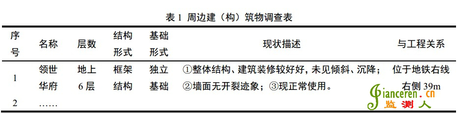 (5)項(xiàng)目周邊各類監(jiān)測對(duì)象(建筑物、管線等)的原始資料與使用現(xiàn)狀資料,一般可通過施工單位獲取,或自行整理;