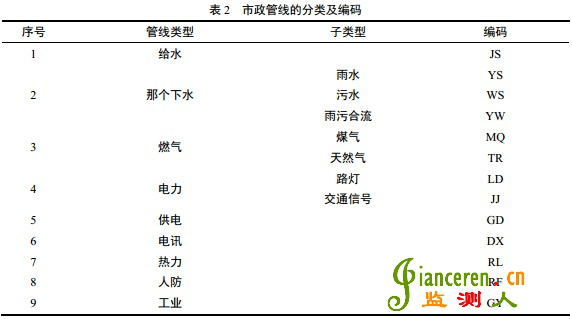 由于管線大多埋于地下,對(duì)于監(jiān)測單位很難對(duì)其進(jìn)行調(diào)查,僅能通過設(shè)計(jì)單位提供的綜合管線圖以及現(xiàn)場反饋的情況進(jìn)行了解。從監(jiān)測的角度來說,應(yīng)特別注意空間上與工程有緊密關(guān)系且有壓力的管線。市政管線的類型可參考下表。