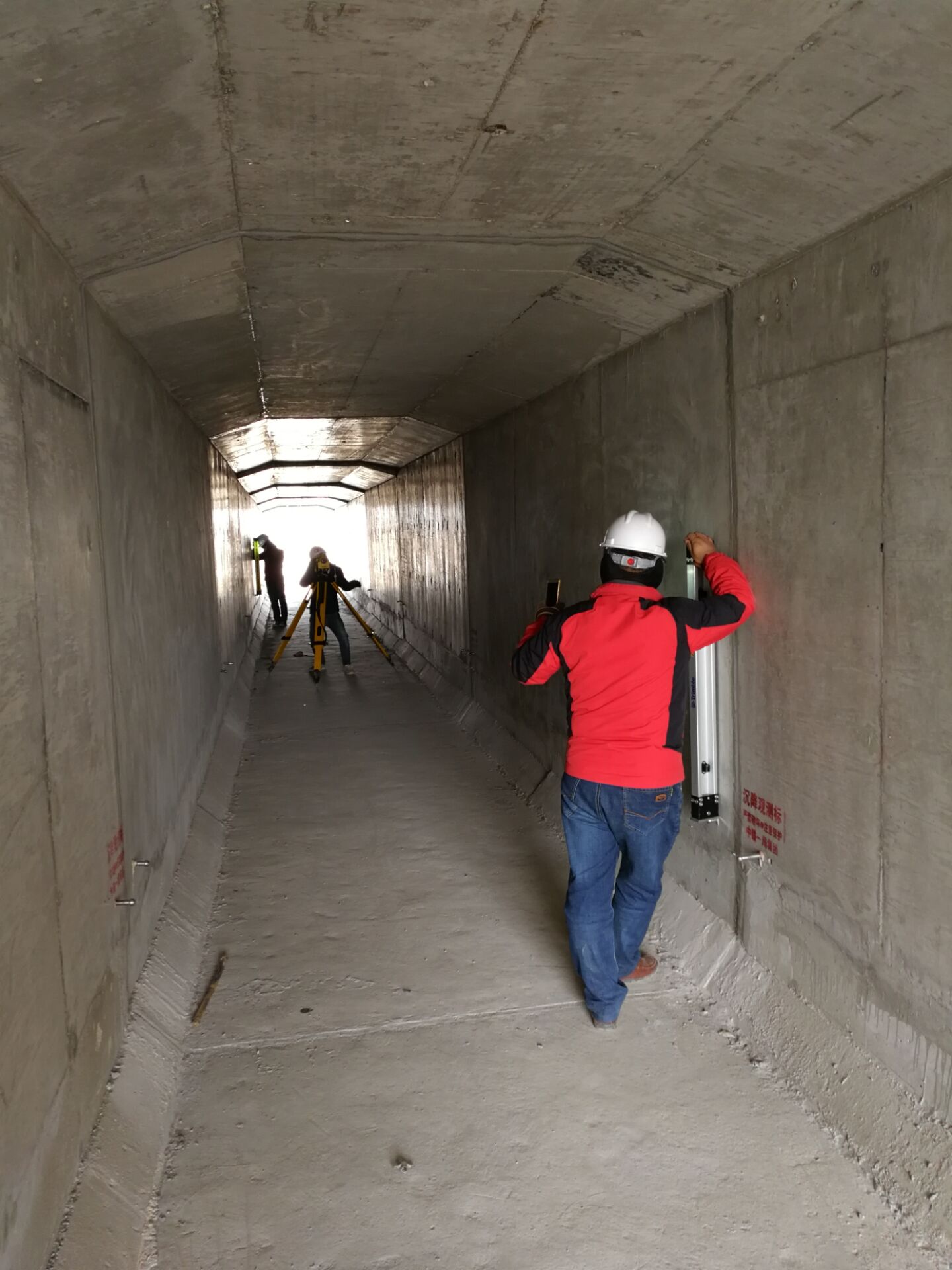 銀西沉降組員涵洞測(cè)量